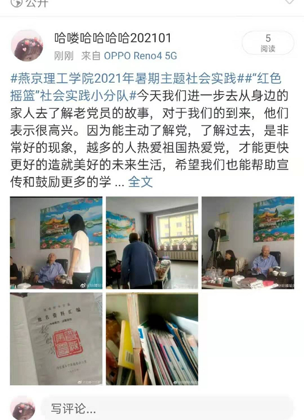 燕京理工学院2021年暑假“体验省情·服务群众”社会实践活动——红色摇篮队
