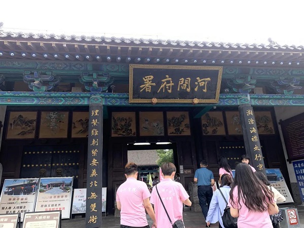 北宋大观二年(1108年),河间府署始置,因其规模宏大,是昔日与保定、济南、开封齐名的京南四大名府之一,素有“京南第一府”之美誉。府衙内有众多建筑,如戒石坊、大堂、养正书院等,蕴含丰富的廉政元素。一系列匾额楹联,也包含着警示官员勤政清廉的内容。廉政文化品牌不仅提升了景区的知名度,也为营造清正廉洁、健康向上的良好政治生态环境起到了积极的推动作用。参观过程中,团队成员触景生“廉”,在潜移默化中学习了廉政文化。