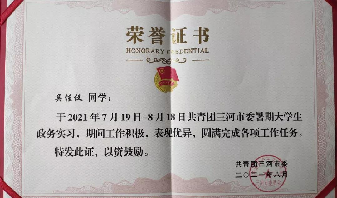 我是注会1901班的吴佳仪,当看到三河暑期大学生政务实习招募后,我便毫不犹豫地报了名,在工作的过程中,也切切实实体会到了基层工作者的不易。随着疫情的严重,我们的工作任务量也加大加重,几乎每天都要对卫健委下发的高风险地区返程人员进行电话询问,逐一排查;按照居委会提供的信息,我们会对在药店买药的居民询问情况,关心身体状况。通过此次的社会实践,我了解到了自身的状况与社会间的差距。今后,我会在努力学习,更好的与社会接轨。