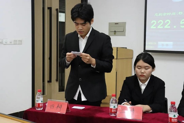 主持人介绍到场评委,并请出李宏涛、王喆、李龙玉、姜晓童、李馨怡一众嘉宾,宣布辩论赛比赛环节和评分规则。