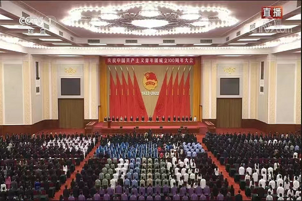 庆祝中国共产主义青年团成立100周年大会于今日上午在北京人民大会堂隆重举行,中共中央总书记、国家主席、中央军委主席习近平出席大会并发表重要讲话。