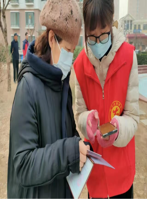 3月10日,吴宇菁所在的社区开启第一次核酸检测。但大多数人弄不明白如何通过手机出示采样码的方式进行核酸检测,她与其他志愿者便一位一位进行指导。