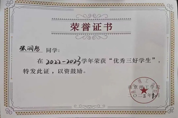 张润彤,燕京理工学院会计学院智会2201班学生,担任智会2201班班长。曾获国家奖学金、国家励志奖学金、连续两年三次获得校级奖学金、2022-2023学年荣获“优秀三好学生”称号、2023年度所在宿舍荣获“百佳宿舍”称号、2023-2024学年荣获“优秀共青团员”称号、2023-2024学年荣获“优秀学生干部”称号、2024年荣获两次“优秀志愿者”称号、2024年荣获第十四届“挑战杯”中国大学生创业计划竞赛省级三等奖、2024年荣获第五届全国大学生创新方法大赛省级三等奖、2024年荣获“外研社·国才杯”英语阅读大赛铜奖,并通过全国大学生英语四级考试、取得初级会计证书,数字化会计师实操证书、普通话二级甲等等相关证书。