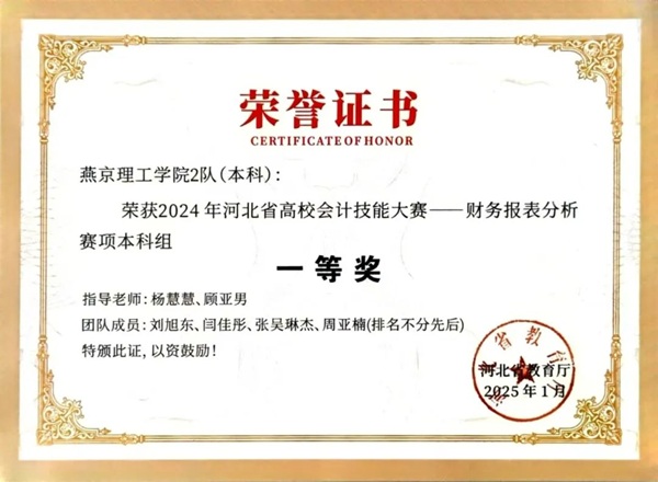 喜报|祝贺会计学子荣获2024年河北省高校会计技能大赛——财务报表分析赛项本科组一等奖