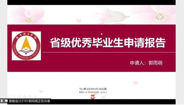 此次评审,分别筛选出22名本科、4名专科、5名专升本优秀毕业生参加评选。各候选人通过精心准备的PPT,从思想建设、学业成绩、科研创新、社会实践、志愿服务、学生工作等多个角度,全面展示了自己大学四年的成长历程和丰硕成果以及他们坚持不懈,迎难而上的精神品格。评审小组认真听取了每位候选人的汇报,并结合其提交的书面材料,从思想政治表现、学业水平、综合素质等多个维度进行综合评议,确保了评选结果的准确性和公正性。参评学子诠释了优秀毕业生应有的精神品格和优良作风。为会计学子树立正确的榜样。展现了昂扬向上的人生姿态和青春的飞扬。