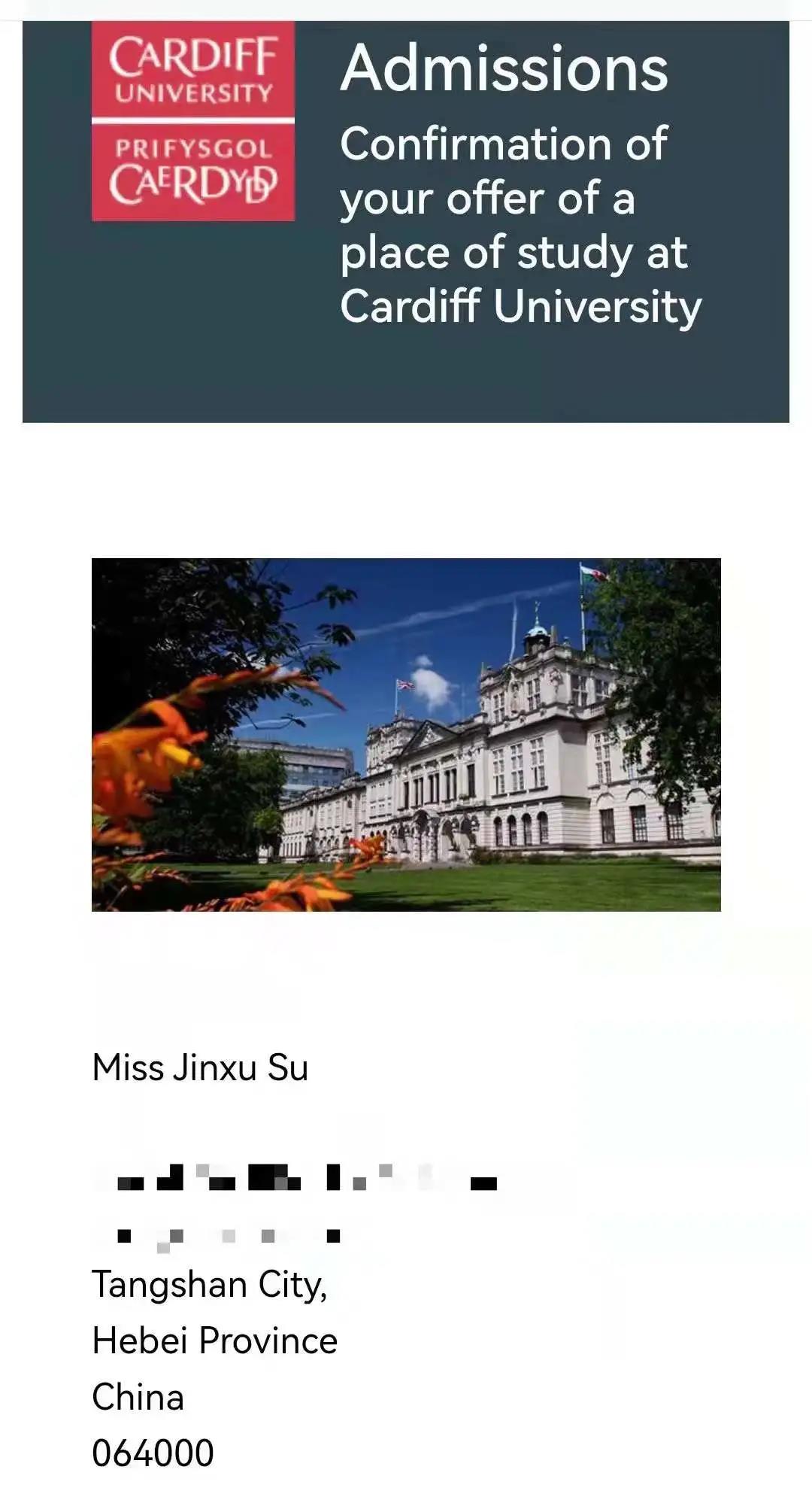 卡迪夫大学(2021QS排名151offer