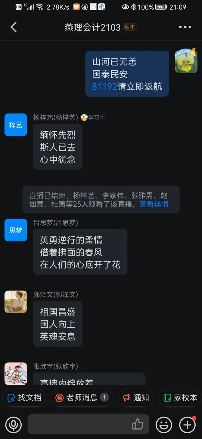同学在网上沉重且庄严的“云”祭扫,也有同学写道,尔以己血献后土,换得神州永太平,吾辈定护山河长青。