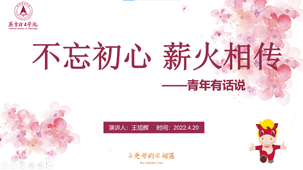 “青年有话说”,由王旭辉同学主讲的《不忘初心,薪火相传》和石玉娟同学主讲的《建党百年的艰辛历程》,向我们介绍了中国共产党在不同时期为中国发展所做出的伟大贡献,带领大家见证了党的风雨百年。在中国共产党的领导下,我们坚持走自己的路,战胜了一个个艰难险阻,创造了一个个人间奇迹。通过两位同学的精彩讲述,全体学生干部回顾了党的光辉历程,缅怀了党的光荣历史。今天,我们有着无比的自信,沿着这条道路意气风发继续前进。