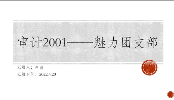 审计2001班团支书李萌发言:“我们班是一个团结勤奋的班集体,也是一个温馨和谐的大集体,我们大家共同为班集体奋斗。我们的班训是细节决定成败,态度决定一切。我们的班级口号是战胜自我,超越梦想!