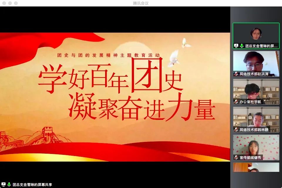 一代人有一代人的长征,一代人有一代人的担当。2022年青年一代在新征程上喜迎党的二十大、建团百年,为加深全体党团员对五四运动历史意义和时代价值的认识,弘扬五四精神,传承“五四”薪火,引领广大青少年坚定跟党走、建功新时代,以优异成绩迎接党的二十大召开,会计学院团总支和党务助理团于5月29日下午举办“党旗飘扬 团徽闪耀 喜迎二十大 礼赞百年路”线上主题活动。参加活动的老师有会计学院辅导员、团总支指导老师周欣丽老师,会计学院辅导员、党务助理团指导老师王冬月老师,参加活动的人员有团总支副书记,各部门部长和干事以及党务助理团团长,各部门部长和委员。