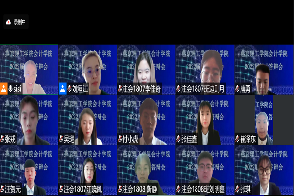会计学院2022届本科毕业论文答辩工作于5月27日~6月2日通过腾讯会议平台有序展开。答辩全程录制存档,答辩秘书进行答辩记录,保证答辩公开公正。整个答辩过程井然有序,严谨规范。