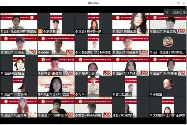 为了更好的引领学生会青年学子进一步了解党的百年奋斗历史,增强学生们的文化自信心和民族自豪感,加强思想道德建设,会计学院学生会于2022年8月1日在腾讯会议召开《习近平总书记重要思想理论精神》学习大会,共同学习党的先进思想。