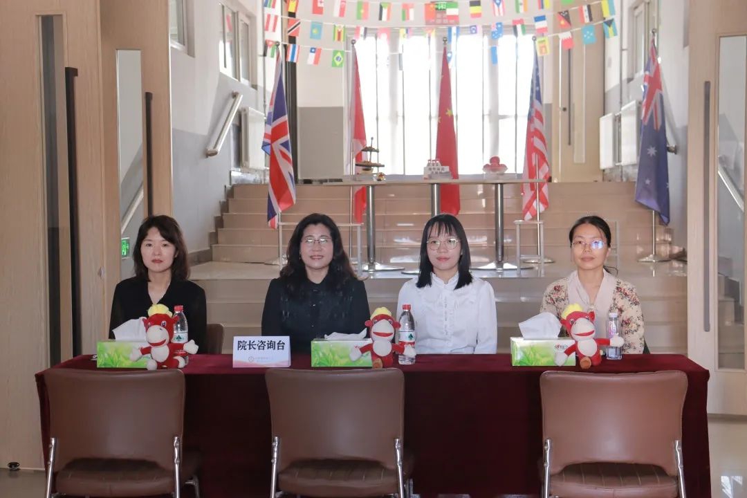 阳光至,师生谈。E楼进门处,院长咨询处长桌摆起,吉祥物京京映入眼帘。院长笑容满面地对新生表示欢迎并认真解答他们的问题,为他们排忧解难,在他们的成长路上保驾护航。