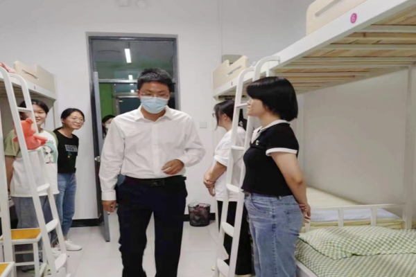 在走访宿舍过程中,胡书记与学生亲切交谈,了解学生宿舍卫生、消毒和通风情况,同时亲切询问学生在生活、学习方面是否存在困难,并鼓励同学要将学习这一根本任务抓牢抓实,加强体育锻炼,养成良好生活习惯,保持积极乐观的心态。