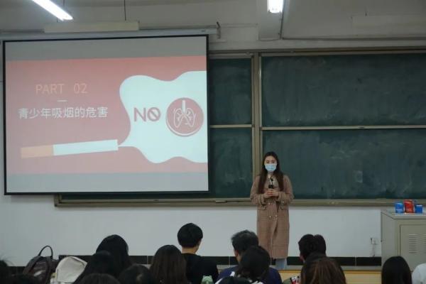 李莹老师向同学们详细的介绍了烟草的背景、香烟的主要成分以及吸烟危害,并讲解了如何科学有效地戒烟,进一步增强了同学们对禁烟知识的了解,在学习禁烟知识的同时,也增强了同学们对烟草危害的警惕,有助于同学们养成健康文明的生活习惯。