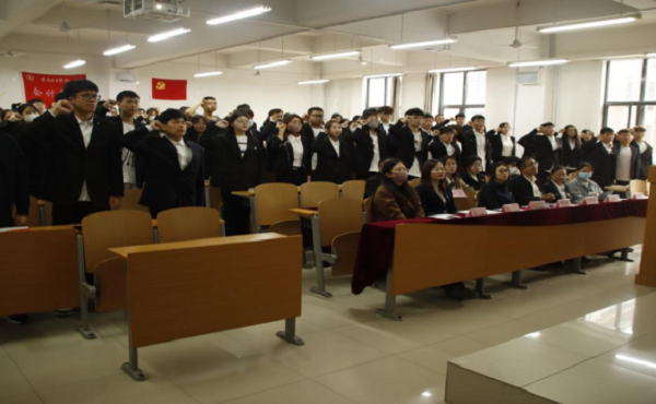 接下来由新学员代表李欣泽同学进行发言并带领学员们进行宣誓。通过宣誓,每位学员都应自觉增强党性意识,以实际行动践行誓言,发扬党的优良传统,牢记全心全意为人民服务的宗旨,争做骄傲的燕理人,争当新时代创造者。