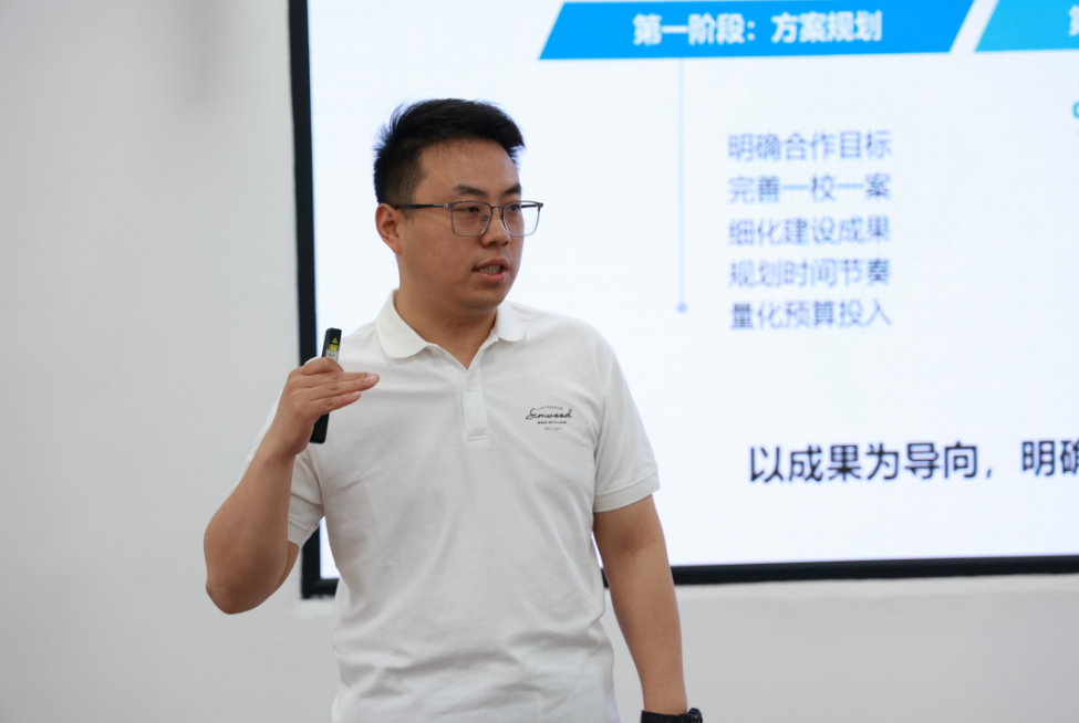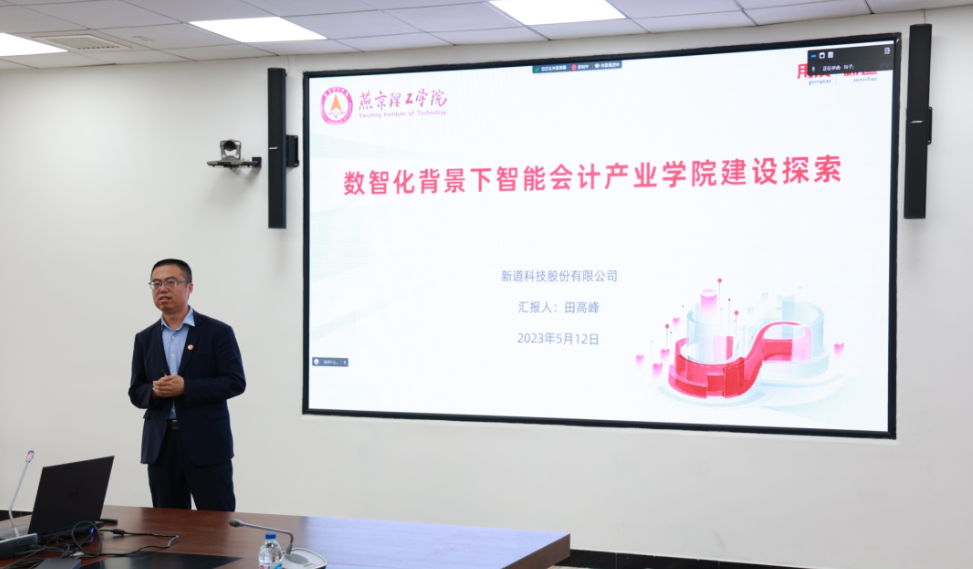 网中网软件有限公司赵玉强经理分享了主题讲座——《数智财经产业学院的建设路径》。赵玉强经理指出数字化战略时代产业学院建设应着力于人才培养模式改革,推进会计类专业重构,打造优质数字化教学资源,提升学科交叉融合的专业建设能力,为燕京理工学院智能会计产业学院建设提供方向。