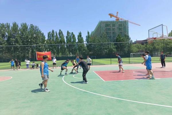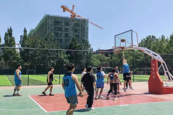 双方队员都使出浑身解数,在队友默契的配合下,投进了一个又一个漂亮的三分球,感染了场外为他们加油的同学们。在赛场上那股韧劲、那份热情,正是诠释着他们的青春热血。