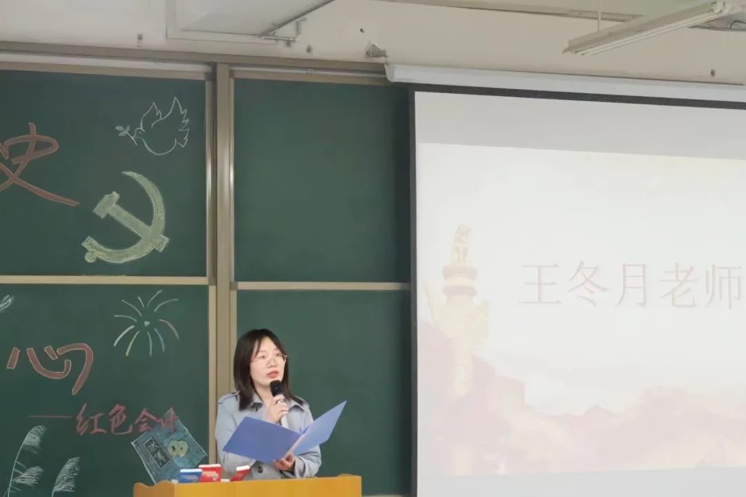 会议伊始,王冬月老师进行发言。王冬月老师指出,一代人有一代人的使命,一代人也有一代人的责任和担当。一代代共产党人为了人民的利益和福祉,把青春和生命、鲜血和汗水,倾注在中华大地。如今历史的接力棒传递到了我们手中,为把祖国建设成富强民主文明和谐美丽的社会主义现代化强国,我们年轻人重任在肩、责无旁贷!在今后的学习生活中,我们要学习前人的吃苦耐劳的品质,不畏困难艰险,勇往直前,创造自己的价值为祖国做贡献。