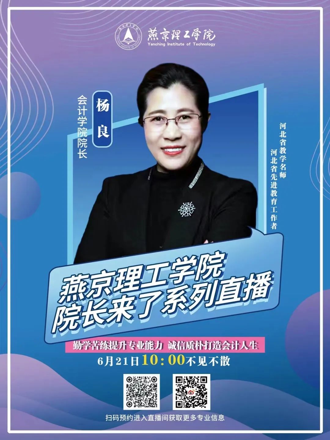 为了帮助2023届高考生更全面地了解会计专业内容,更好的认识燕京理工学院会计学院,6月21日,会计学院院长杨良教授参与燕京理工学院“院长来了”系列直播节目。