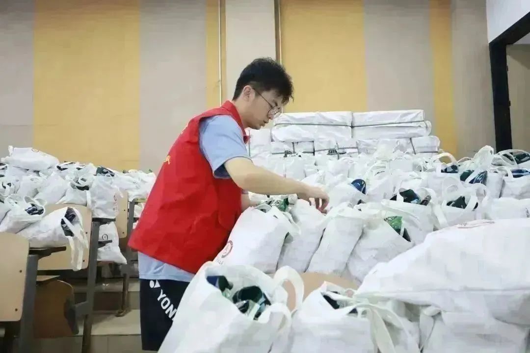 示范岗的学生党员早早来到迎新服务点,他们统一穿着,佩戴党徽,用饱满的热情和高昂的精神状态迎接每一位入学报到的新生。