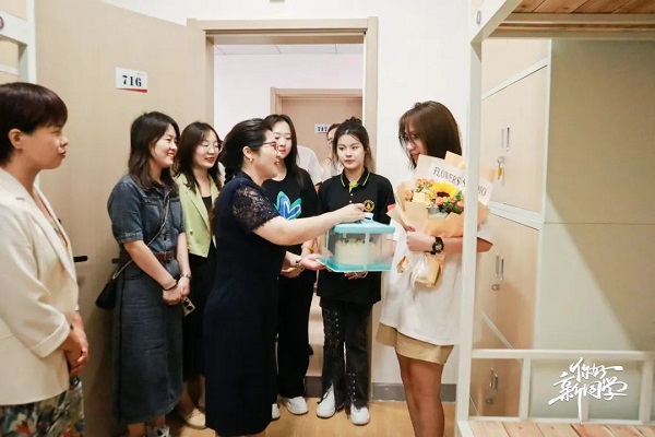 9月8日,期待已久的会计学院2023级新生迎来开学大放送,此外,今天也是会计学院2023级新生审计学专业的张祎鑫、注会2302班的王佳悦、智会2302班的孟怡彤三位同学的生日。杨良院长以及2023级辅导员分别前往三位同学的宿舍,共同为他们送上学校生日祝福和礼物。