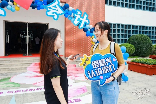 迎接着会计学院的每一名新生