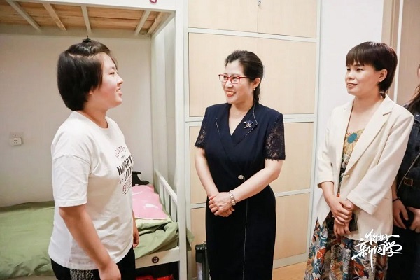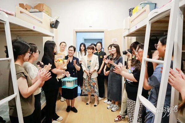 志愿者带领学生进入学生宿舍