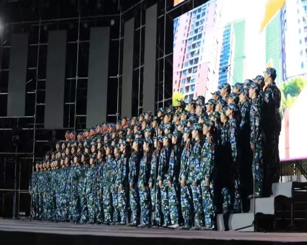 在此期间还举办了军训合唱比赛,教官教大家唱《红旗飘飘》:五星红旗,你是我的骄傲;五星红旗,我为你自豪,为你欢呼,我为你祝福。演绎了中国人民自强不息的伟大精神和奋斗姿态,用嘹亮的歌声,传达出了对祖国的无限热爱以及新时代青年的蓬勃斗志。