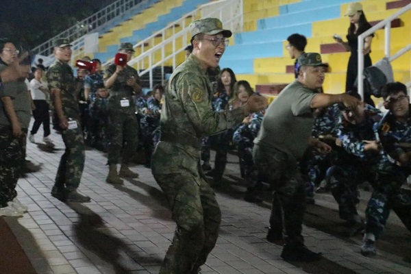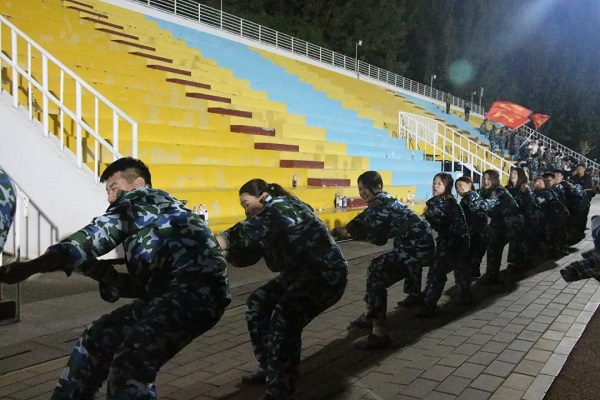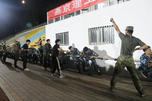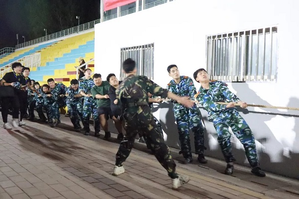 拔河比赛开始前,教官与辅导员对同学们进行了简单的指导与说明,战斗的号角已然吹响,同学们井然有序的站在绳子两侧,互相加油打气,一切准备就绪。彼时,无数身着迷彩军装的学生,在汗水的浸润中,眼睛里闪烁着坚毅的光芒。