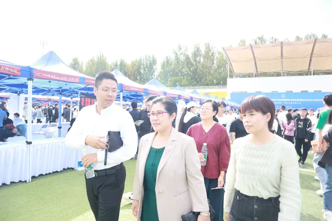 招聘会现场人头攒动,气氛热烈。杨良院长与胡国超书记深入招聘会现场,了解用人单位发展和人才需求情况,对长期以来向我院人才培养和就业工作提供的大力支持表示感谢,并与企业代表亲切交谈,就企业进行的招聘需求、人才储备情况、毕业生专业对口情况、人才培养输送、简历投递后选聘程序等方面进行了深入交流,希望各参会企业与我院加强校企联动,共赢发展,不断取得新的成效。