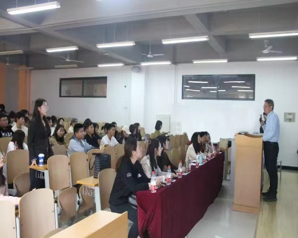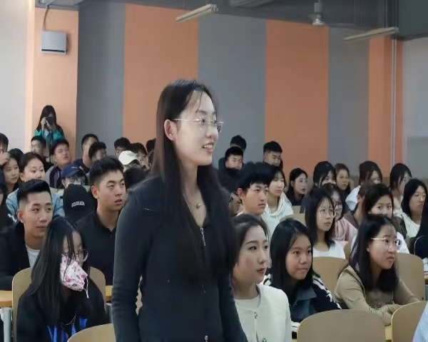 在提问环节,袁教授与学生们热情互动,悉心解答学生们、教师代表所提出的问题。最后,袁教授以“尽心尽力,正确的做好每件正确的事!为了美好将来,需要一步一步,踏实前行。相信,你们能做好!”作为结束语,对同学们寄予了期望。