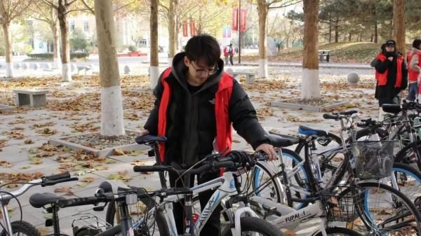 11月的晨曦,乍暖还寒。活动中,志愿者身穿火红的马甲,来到校园的各个角落,将道路两旁以及校园内随意停放的自行车、推到指定位置并摆放整齐。寒风凛冽,却吹不散志愿者青年的热情。在团总支的带领下志愿者们不辞辛劳,把自行车一一归位,为创建文明社区积极贡献一份微薄之力。