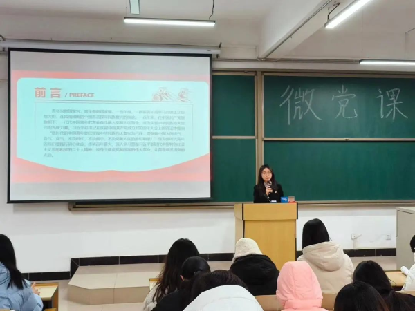为深入贯彻、落实习近平新时代中国特色社会主义思想,学习党的二十大精神,提高会计学院同学们的责任意识、坚定其理想信念,2023年12月6日,聚星火工作室为会计学院2022级学生开展以“以青春之躯,担时代之责”为主题的微党课进课堂活动,本次活动由许磊同学担任主讲。