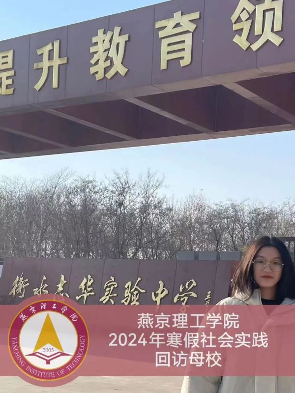 为引导我校广大学生将专业理论知识与社会实践相结合,我校展开了2024年寒假社会实践系列活动。为感恩母校,宣传燕理,于2024年1月22日我参加了其中的“回访母校”活动。通过本次活动,我见到了培育我三年的恩师,见到了充满活力的学弟学妹,锻炼了自己的发言能力,最重要的是向他们介绍了我就读的专业并宣传了我校优越的办学条件和国际化的特色培养,我觉得受益匪浅。