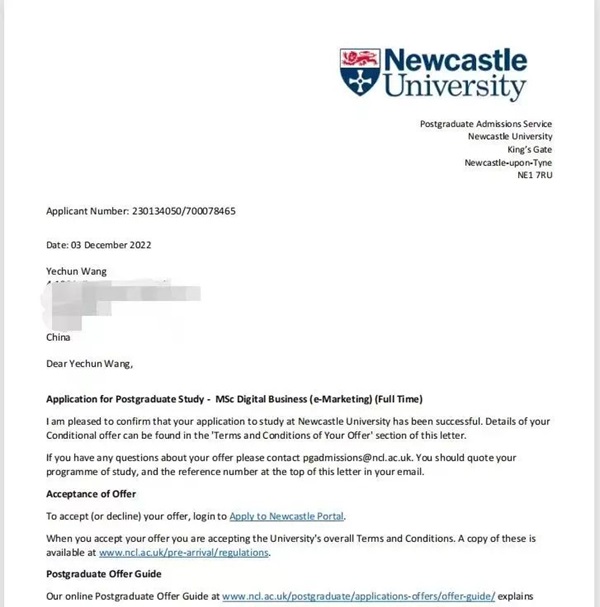 会计学院会计专业王业淳同学 (17级) 获得纽卡斯尔大学 (2023年QS世界排名第122) 数字商务专业Offer。王业淳同学除了学术成绩优异,还积极参与各种实践活动。他曾参加过学校组织的商业模拟比赛,通过团队协作和个人努力,取得了优异的成绩。此外,他还利用假期时间参加了相关实习,将理论知识应用于实际工作中,积累了丰富的实践经验。纽卡斯尔大学的数字商务专业在全球享有盛誉,其教学质量和研究水平都处于领先地位。王业淳获得该专业的 offer,无疑为他的未来发展开启了一扇广阔的大门。在纽卡斯尔大学,他将有机会接触到最前沿的数字商务知识和技术,与来自世界各地的优秀学生共同学习和交流。