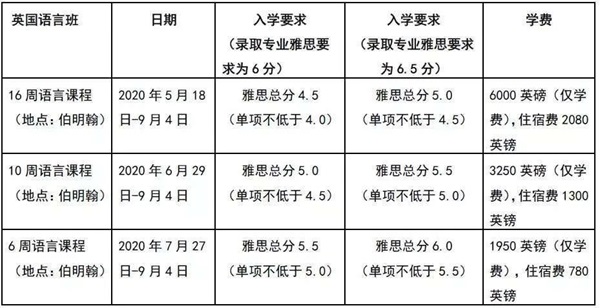 伯明翰城市大学在英国伯明翰市以及我国上海都开设了语言课程,语言课程时长根据学生所选专业雅思要求及学生的雅思成绩决定,雅思成绩最低4.5分,单项不低于4.0分即可入读。