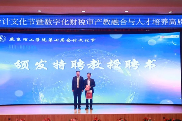 随后,燕京理工学院副校长王传超为江苏财经职业技术学院原校长、会计学教授程淮中授予特聘教授证书。