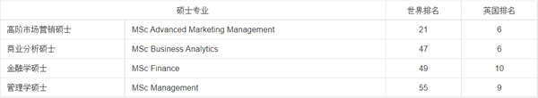 兰卡斯特大学管理学院是拥有AACSB、AMBA、EQUIS和SBC四重认证的世界顶尖商学院之一。以会计金融类专业著称,并拥有王牌专业市场营销。根据2021年QS商科硕士排名,高级市场营销管理专业排名位于英国第6位,全球第21位 。根据2020年金融时报排名结果,兰卡斯特大学金融硕士专业排名位于英国第8位,全球第43位 。