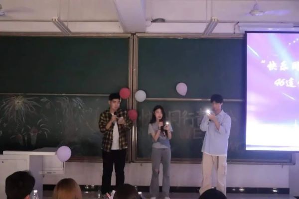 此外,还有学长带来的一场听觉盛宴,各班班长和团支书也用精彩的歌曲带动了全场的气氛。同时,晚会还设置了互动小游戏,这些游戏吸引了同学们的参与。在游戏中,同学们不仅展现了自己的智慧和勇气,还增进了彼此之间的友谊和联系。现场气氛热烈,掌声、欢笑声此起彼伏,这项环节让同学们在轻松愉快的氛围中加深彼此的了解和友谊。
