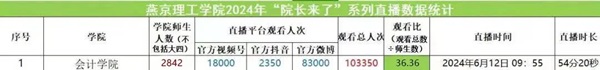 此次直播活动吸引了大量的关注。根据直播数据显示,观看流量总人次达到103350。杨良教授以通俗易懂的方式深入浅出地讲解了专业知识,使同学们能够轻松理解会计学院的教学方式、师资力量和教学队伍等情况。