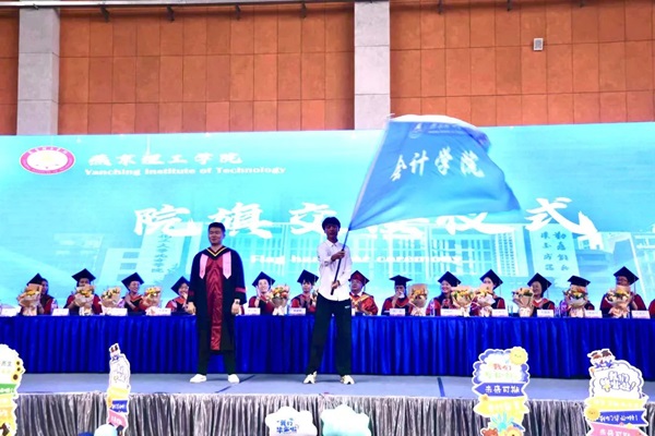 在庄严的歌声举行了院旗交接仪式,看到会计学院院旗从毕业生的手中交给下一届大一的学弟学妹,看到了延续的希望,看到了会计学院再次充满生机与活力,发展的火炬在一届届学生手中绵延至今仍将继续,未来会计学院也会培养更多的专业化人才,为社会发展贡献力量。