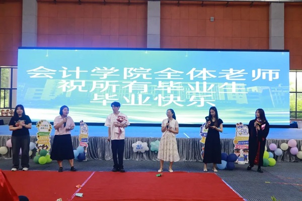 会计学院院长杨良教授也为毕业生们献上自己的殷殷期盼。杨院长对2024届全体毕业生们顺利毕业表示衷心的祝愿,对支持和认可学院工作的各位家长表示诚挚的感谢。杨院长表示,学院近几年不断突破发展少不了老师和同学们的大力支持和积极努力,正式因为有他们,学院才能有更多教研、竞赛等成就,才能完成转设评估、转型发展评估、学士学位评估、教学合格评估等一系列的重大任务,杨院长也衷心的希望同学们在今后的人生中不断突破,用勇气去行动,用意志去坚持,用热爱去享受,把畏难情绪全部冲销掉,把豪情壮志摊销到新的生活之中,将迷茫计提减值准备,理清思绪,携上梦想,朝着你们新的理想奋力飞翔,为今后的人生道路储存流动资产、固定资产、无形资产。杨院长的寄语中既有对毕业生们满满的不舍与肯定,也饱含对毕业生们给予的厚望与嘱托。