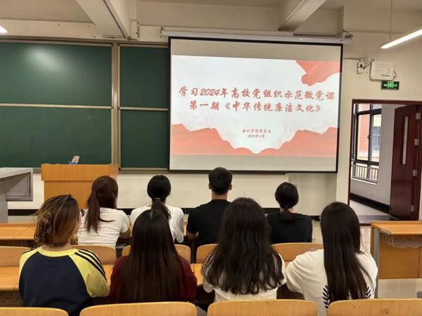 为深入学习贯彻习近平新时代中国特色社会主义思想和党的二十大精神,扎实推进党纪教育走深走实,引导学生党员坚定理想信念,提高党性修养,2024年6月21日,会计学院全体师生党员观看2024年高校党组织示范微党课展播第一讲《中华传统廉洁文化》。
