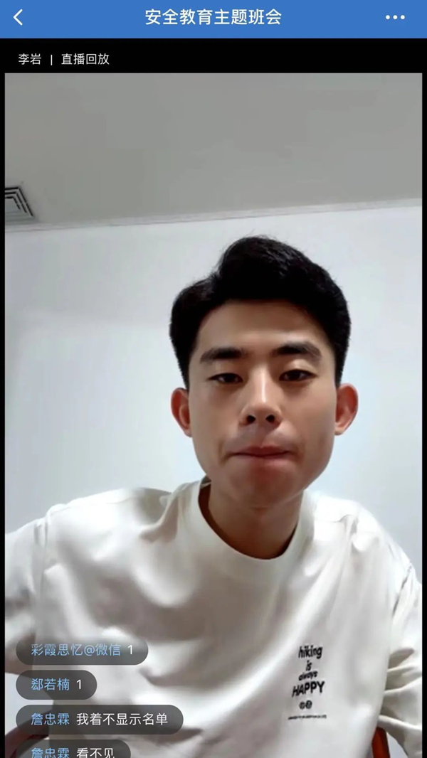 同时辅导员老师也认真叮嘱学生们不仅要保护自身人身安全,还应注意保护个人财产安全,谨防推销、电信诈骗、网络贷款等侵害。要充分认识网络不良借贷存在的隐患和风险,增强金融风险防范意识,要树立理性科学的消费观,拒绝超前消费,拒绝校园贷,远离“校园贷”、电信诈骗、传销等歧途。注意重点防范冒充好友诈骗,虚假网络游戏交易诈骗等情况,切勿相信网络平台陌生人发布的信息。