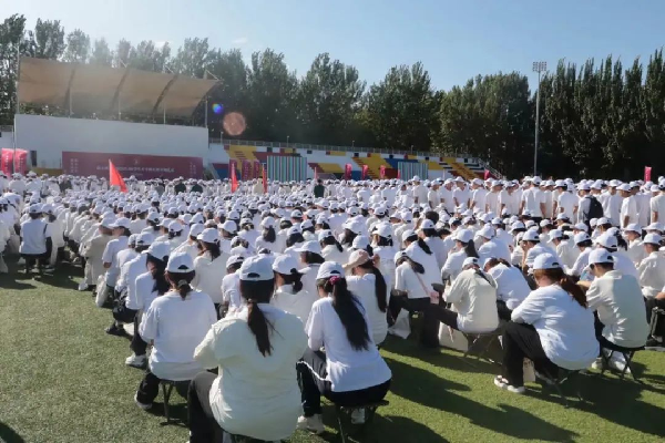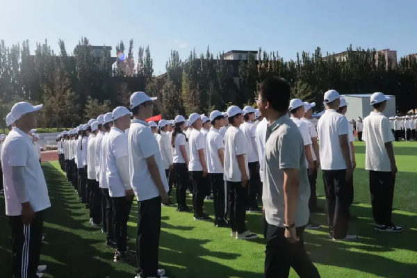 操场上队列整齐、旗帜飘扬,总教官威严的口号声拉开了军训开营的序幕。军训总教官表示,在接下来的军训过程中将严格按照军训计划,科学施训,严格要求,同时也希望全体新生能够不畏艰难,勇于挑战自我,在军训中磨砺意志、锻炼体魄,增强团结协作的精神,共同度过这段宝贵而难忘的时光,为今后的学习与生活打下坚实的基础!