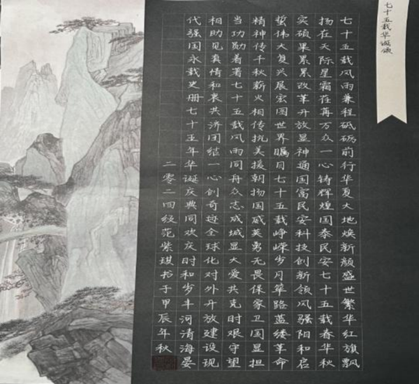 在书法创作中,同学们以笔为媒,书写红色经典诗词和革命先辈的豪言壮语,字体或刚劲有力,或婉约秀丽,展现出对红色文化的深刻理解和敬仰之情。