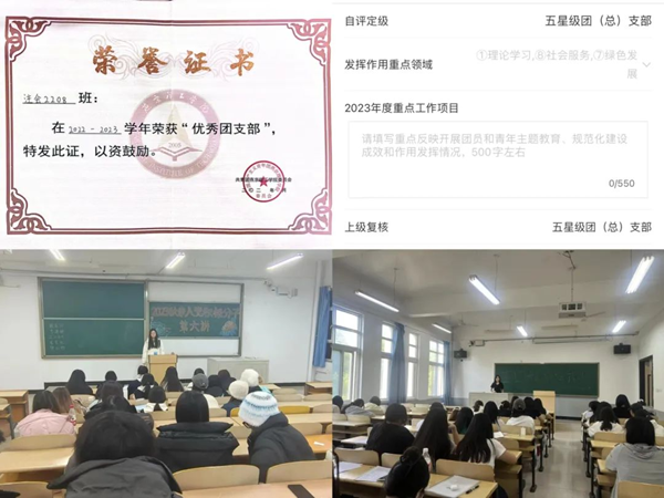 团支部曾在2022-2023学年和2023-2024学年两学年获得“优秀团支部”称号,在2023年对标定级中表现优秀,定级为“五星级团支部”。