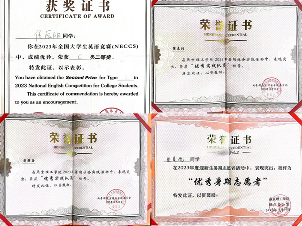 在老师的鼓励下和支部成员的不断努力下,同学们考取了诸多证书,在过去的大学生涯中,取得初级会计证书17人,英语四级证书10人,普通话证书二乙以上有21人,截止今年普通话证书参考人数达到了班级人数的100%。支部成员在五四评优和校级评优等评优中表现优秀,其中4人多次获得优秀共青团员、1人获优秀共青团员标兵、1人获优秀共青团干部、1人获优秀团支部书记、4人获校级三好学生、1人获“优秀宿舍长”称号。