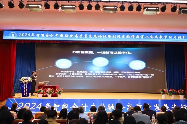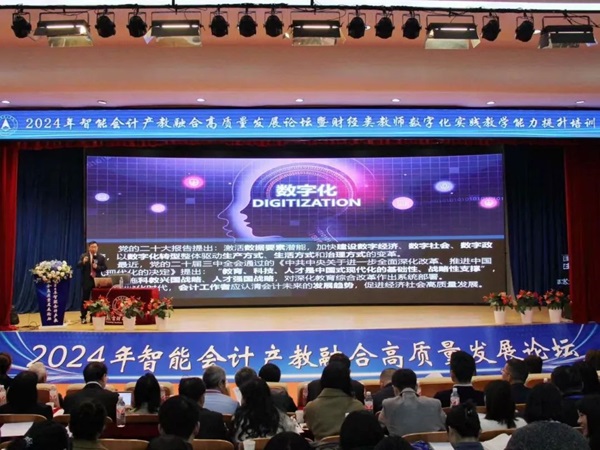 1031日上午,2024年智能会计产教融合高质量发展论坛暨财经类教师数字化实践教学能力提升培训活动,在燕京理工学院隆重开幕。论坛启动仪式顺利结束后,随即进入了专家讲座环节。国家会计学院秦荣生教授,围绕“数字化与会计未来发展趋势”的主题,进行了精彩的专题报告。本次报告旨在深入剖析数字化技术如何重塑会计行业,以及会计人员应如何适应变革,从而提升个人职业素养和行业竞争力。